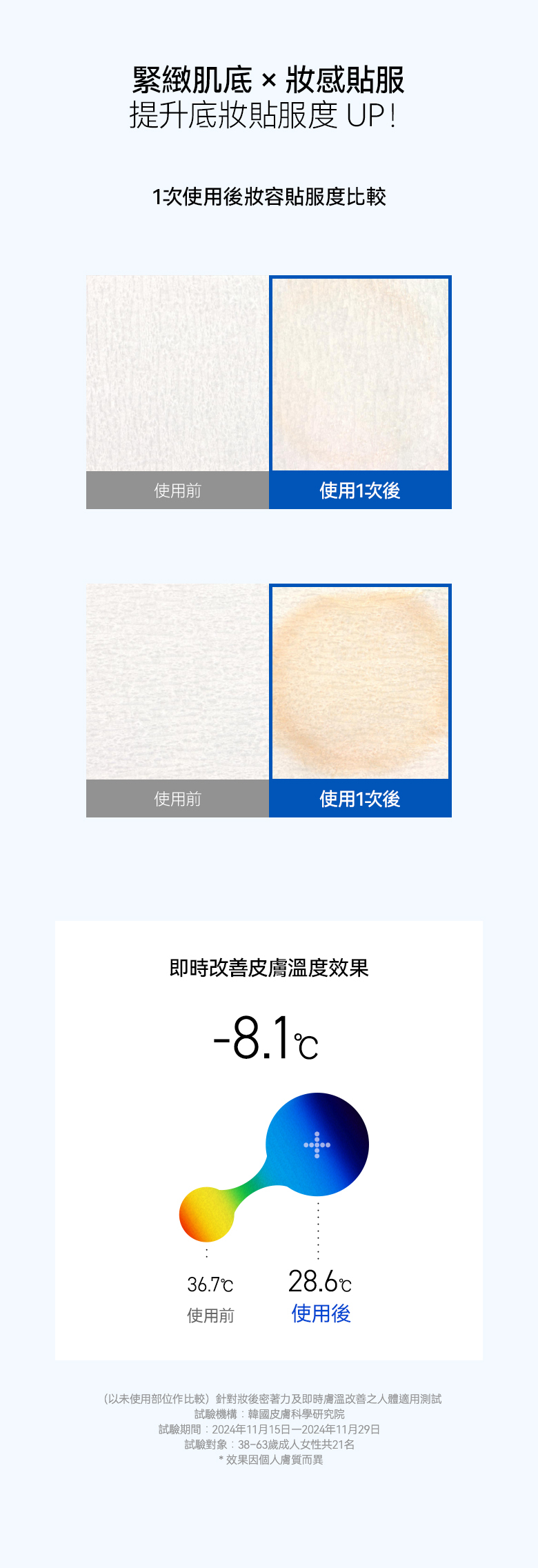 💠 肌膚即時降低8.1度,敷貼5分鐘大幅提升妝容服貼度