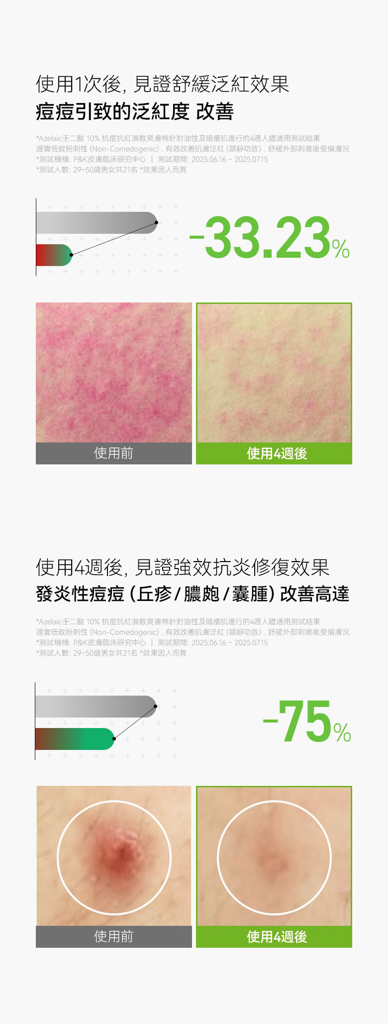 🧪 發炎性痘痘減少48.2%,有效舒緩紅腫與發炎痘