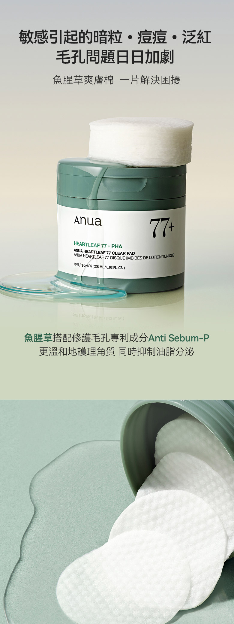 🌿 魚腥草萃取物 x Anti Sebum-P x 果酸PHA