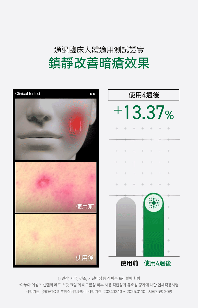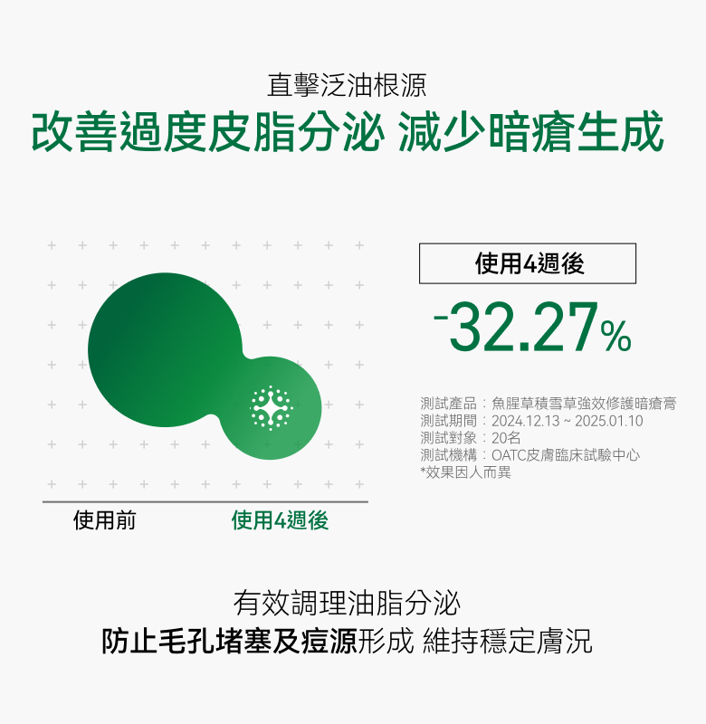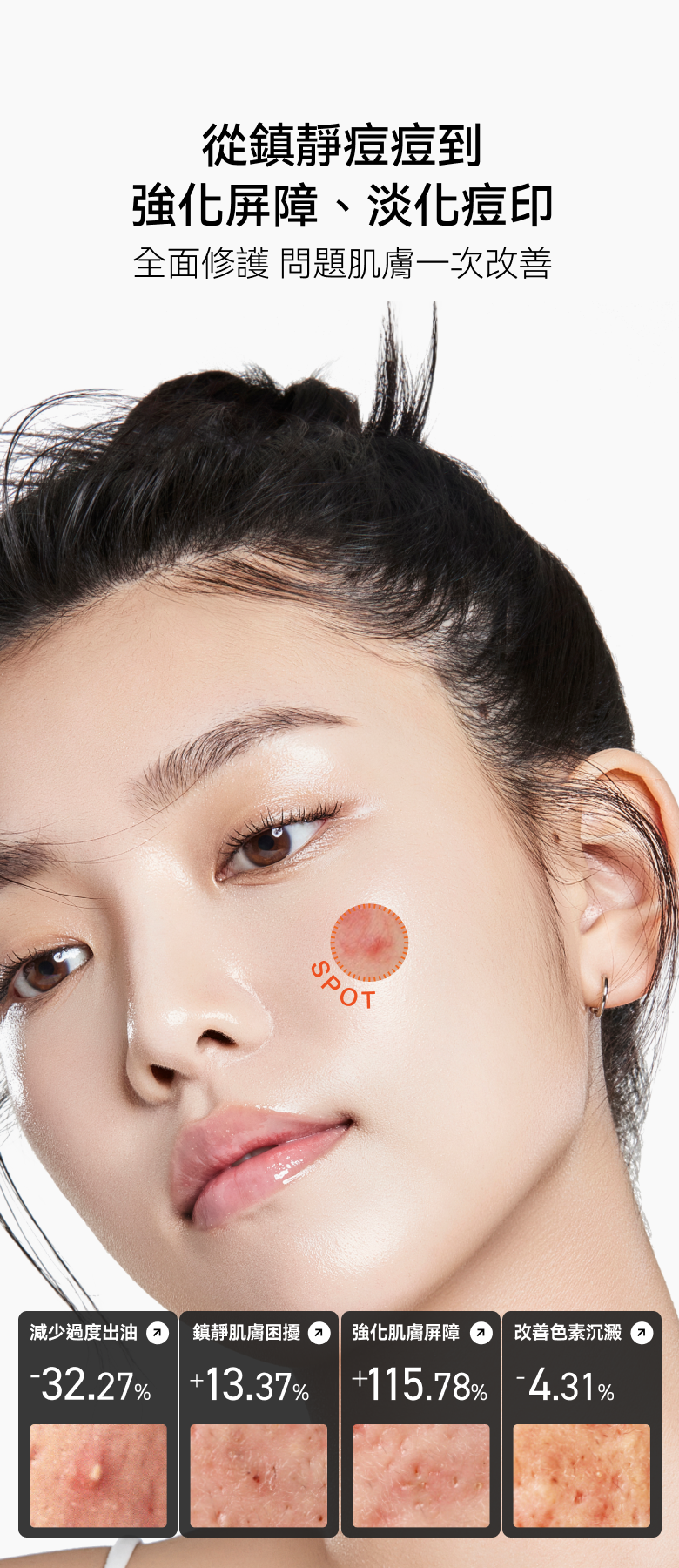 🌿 暗瘡改善(減少)13.4%,全面修護不穩定暗瘡肌