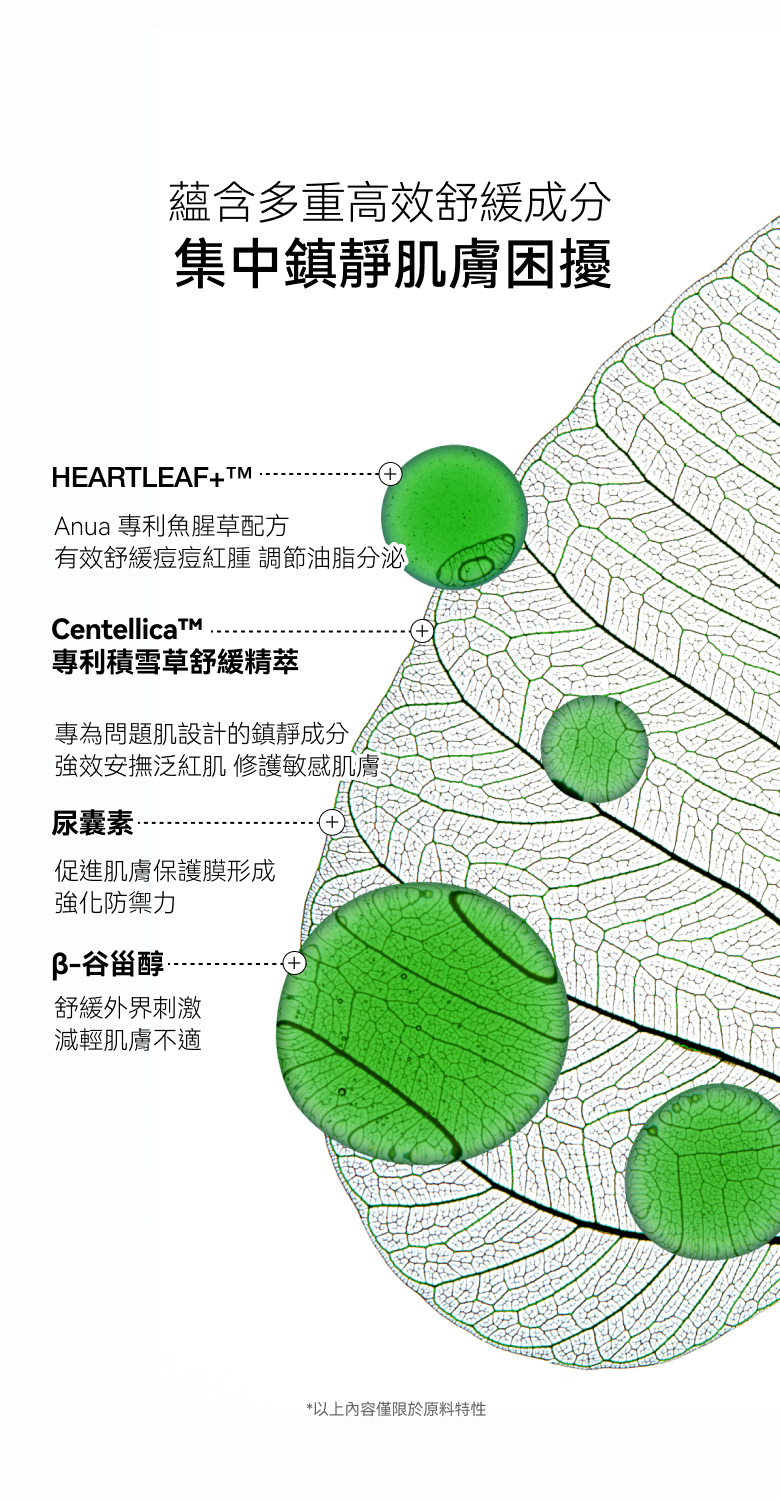 🌿 HEARTLEAF+™ x 積雪草舒緩精萃™ x 6重神經醯胺