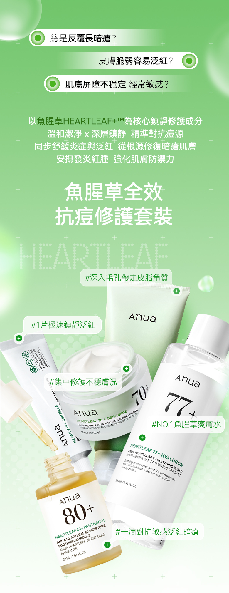 🌿 全面抗痘抗炎,鎮靜敏感不穩膚況