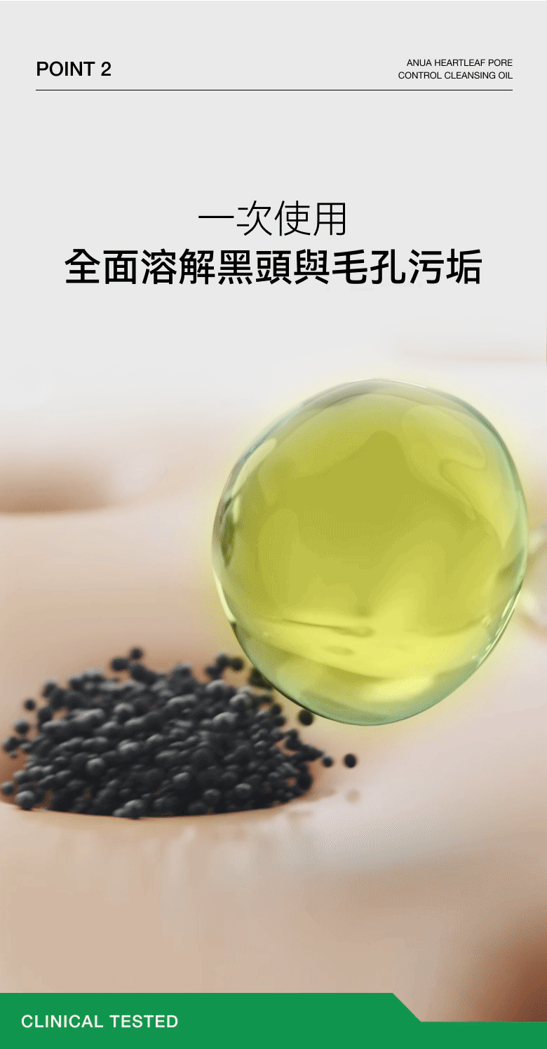 🌿 一油三效:深層卸妝,同步溶解黑頭並溫和控油