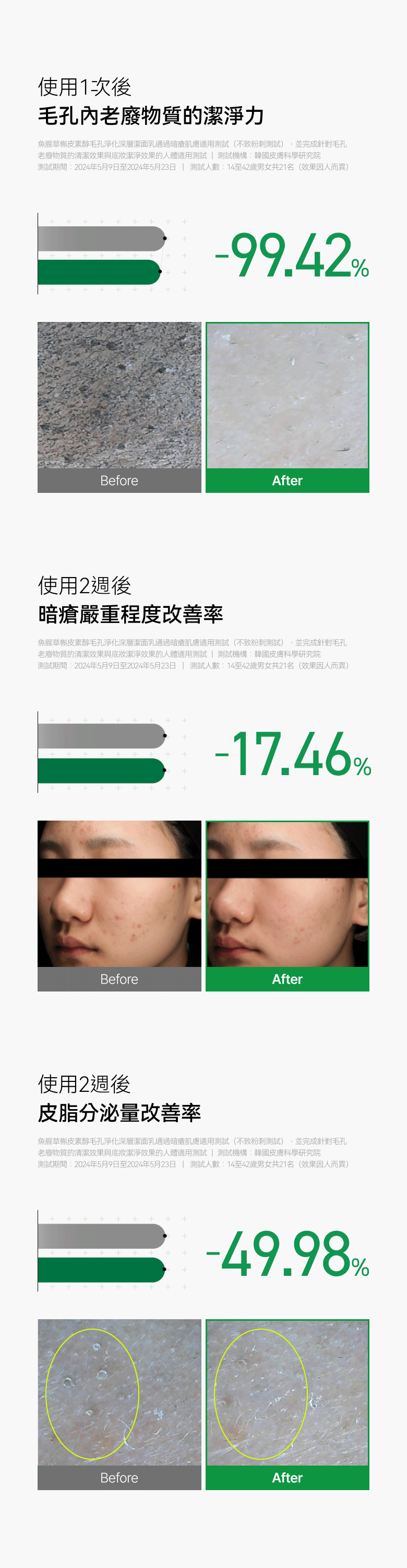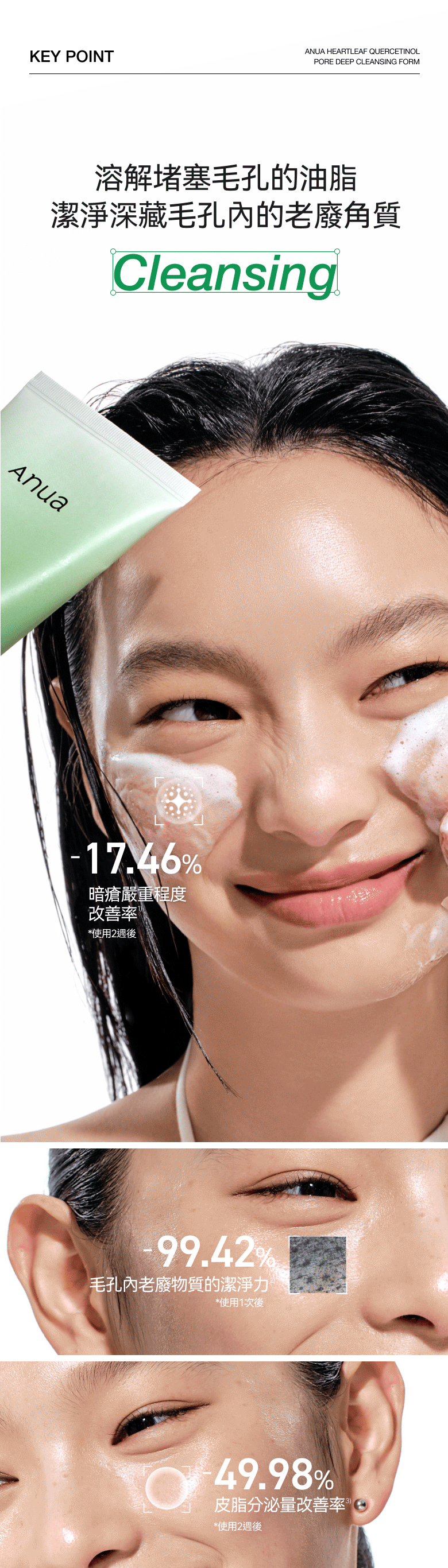 🌿 毛孔潔淨力99.4%,預防皮脂堵塞與暗瘡形成