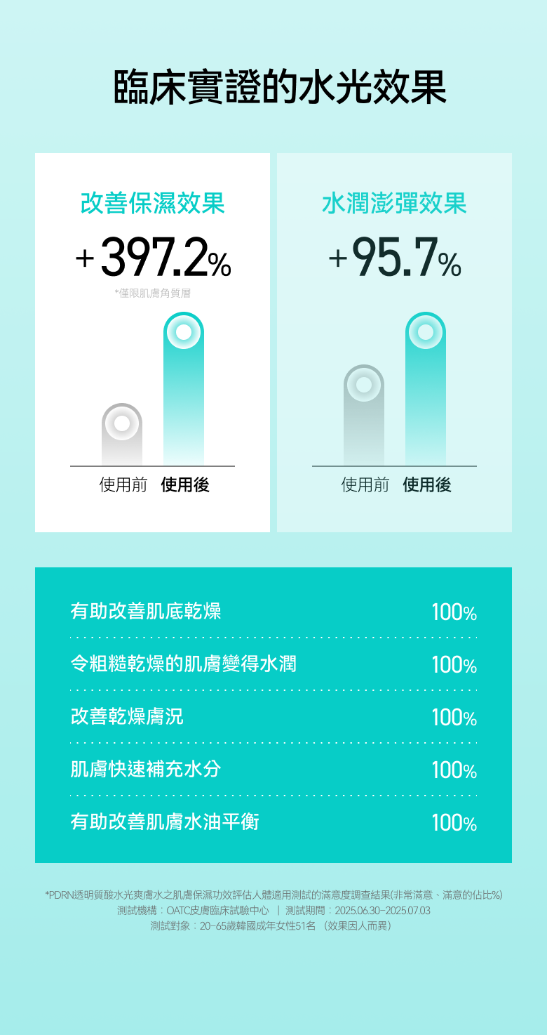 💧 肌膚水光感提升至95.7%,呈現透亮柔潤的水感肌底