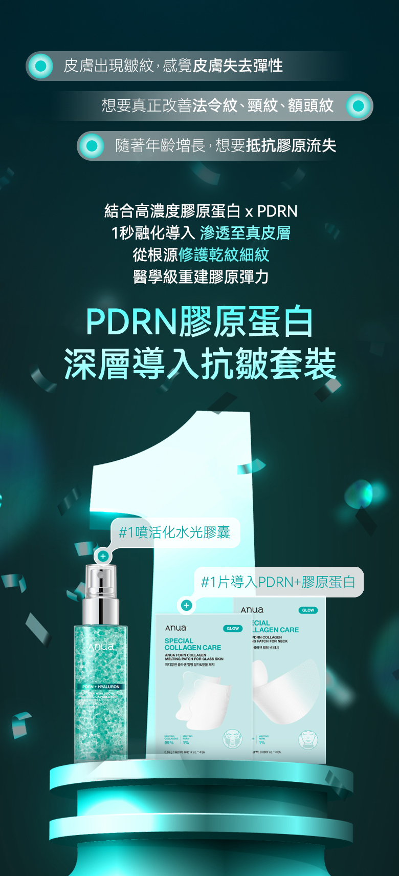 🛒套裝内容:PDRN膠原蛋白抗皺提拉修護貼(頸/額頭&臉頰用)+噴霧(100ml)
