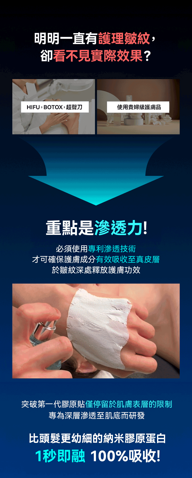 💧一秒融化導入99%膠原蛋白,瞬間撫平皺紋及鬆弛下垂部位