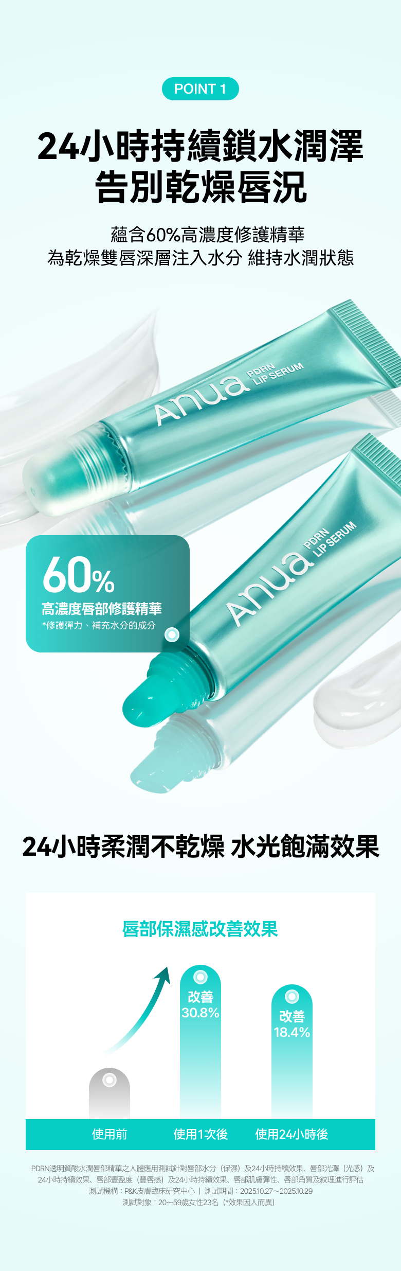 💧唇部保濕增加 +30.8%,24 小時持續保持水潤