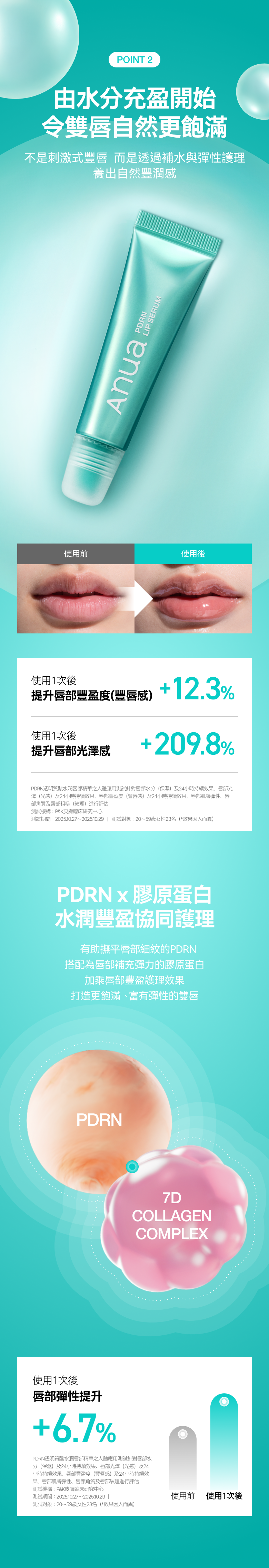💧唇部光澤改善 +209.8%,彈性改善 +6.7%,打造光澤豐潤感