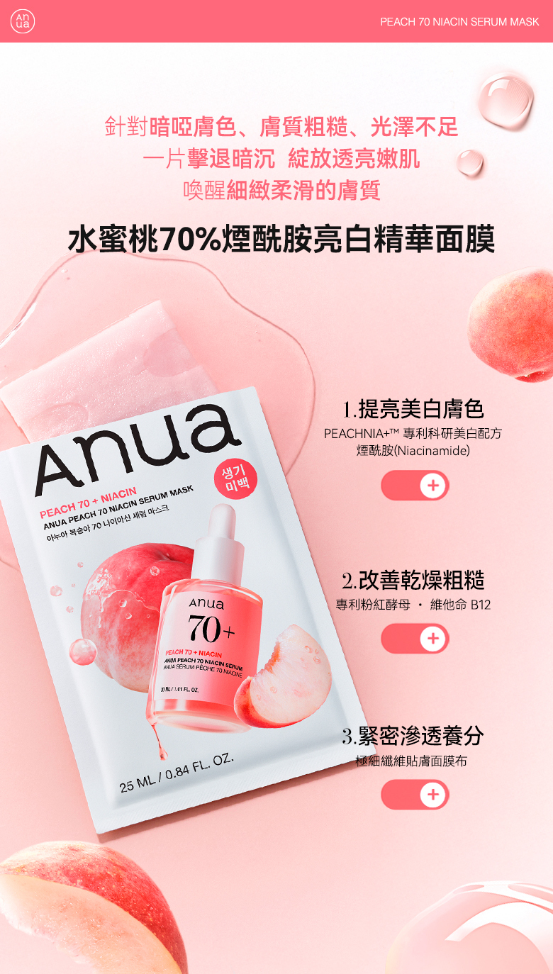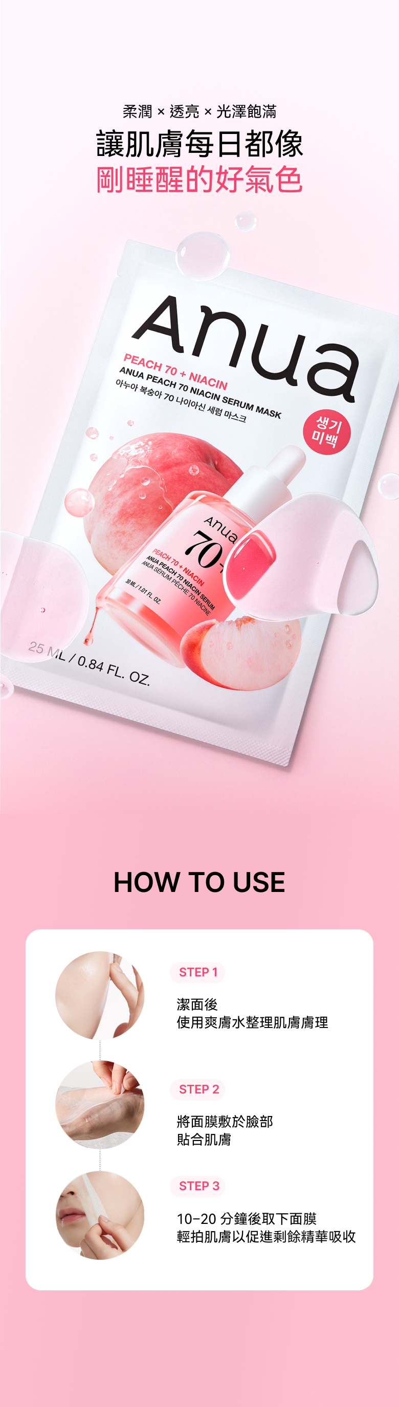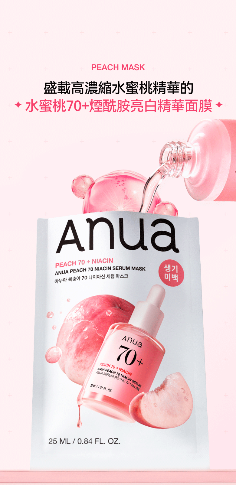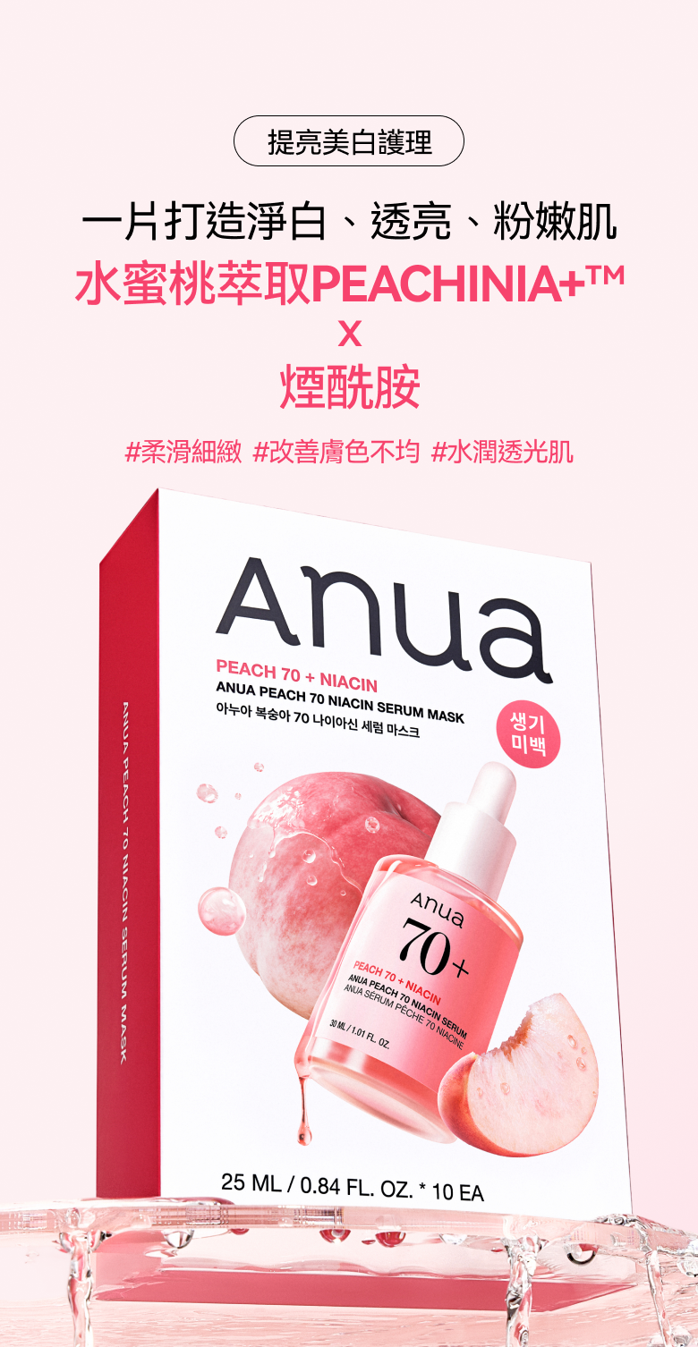 🍑 15分鐘亮白嫩肌,高效注入水潤光澤並改善暗沉粗糙