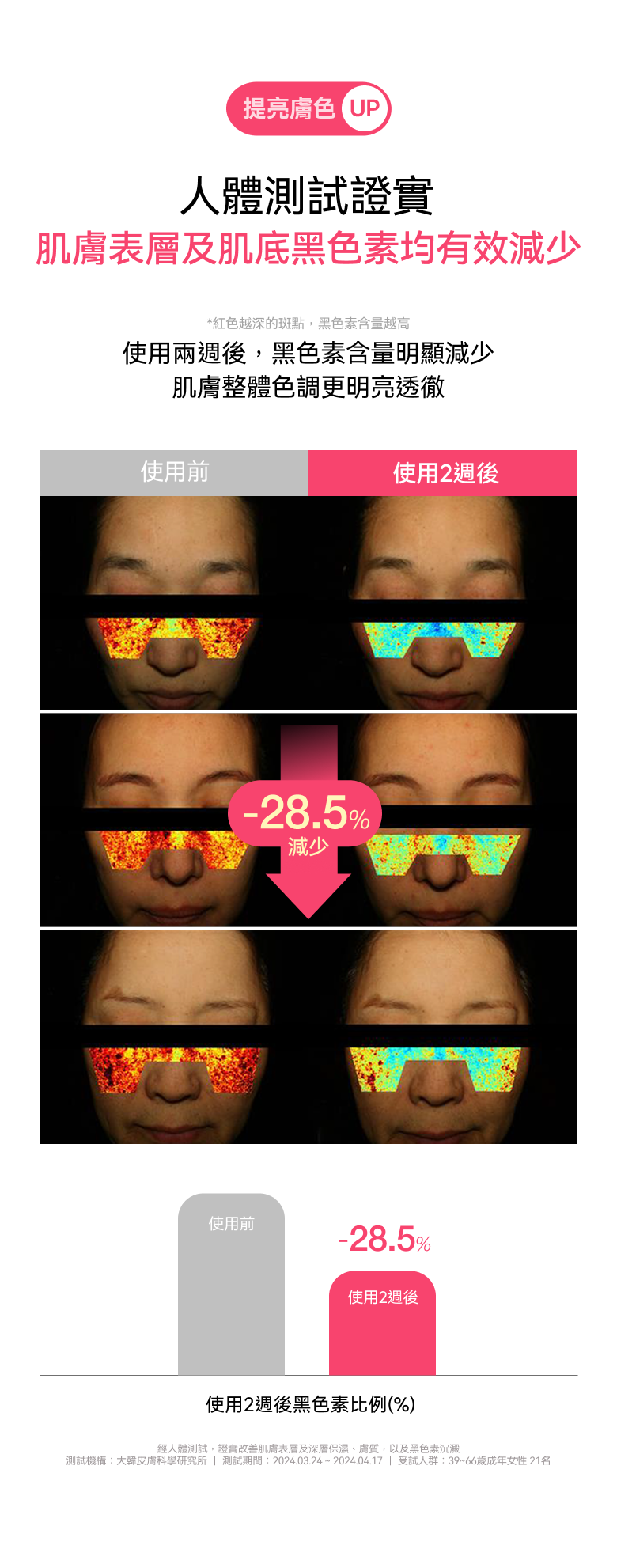 🍑 表深層黑色素減淡28.5%,均勻膚色並提升透明感