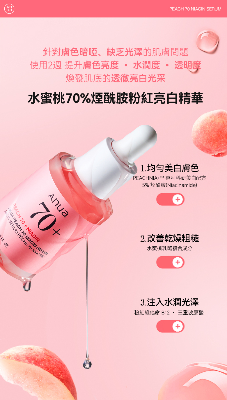 🍑 一滴改善黯沉暗黃,注入生氣光澤與柔嫩亮白肌