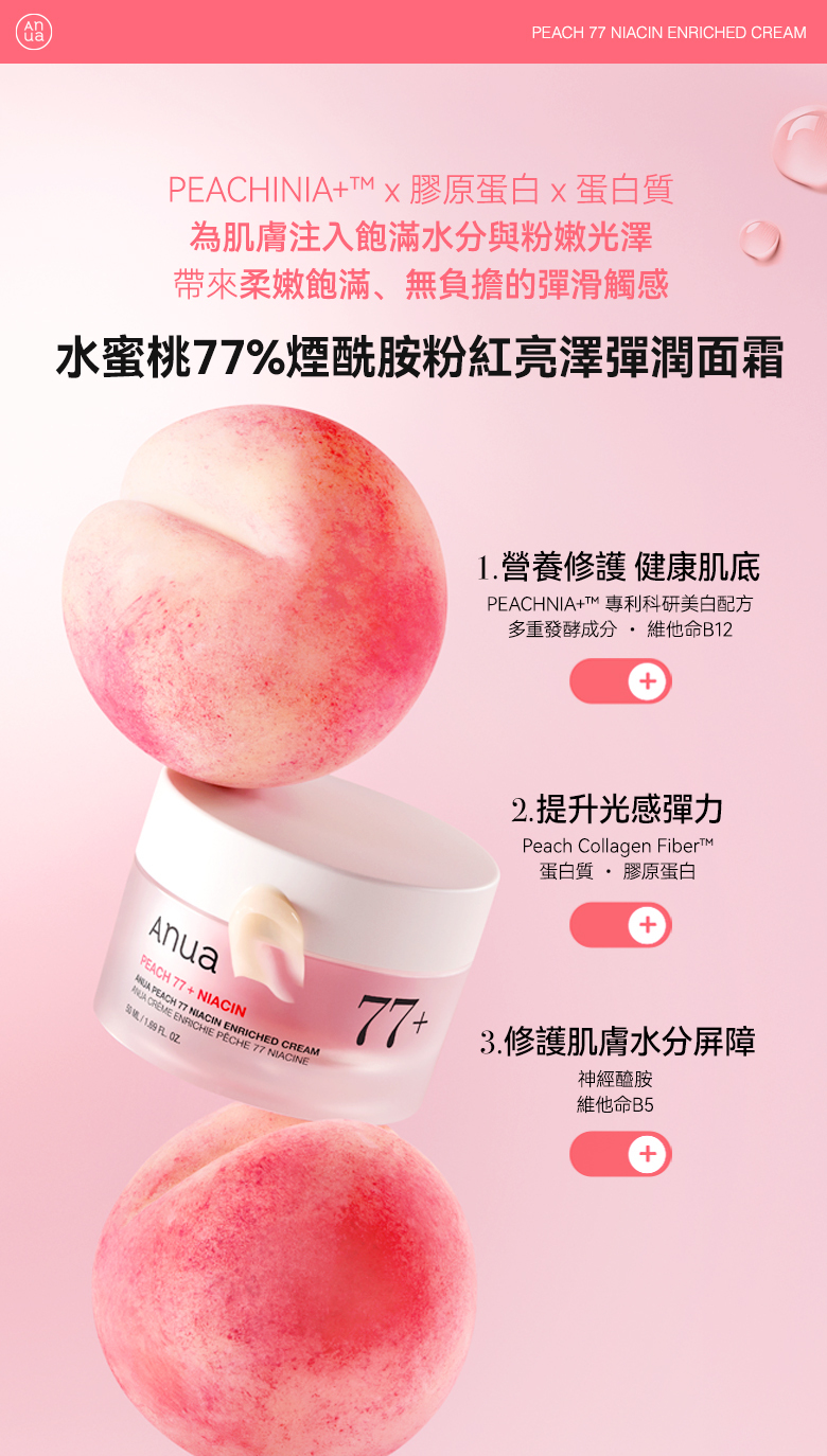 🍑 一抹提升彈潤光澤,修護乾燥粗糙肌理