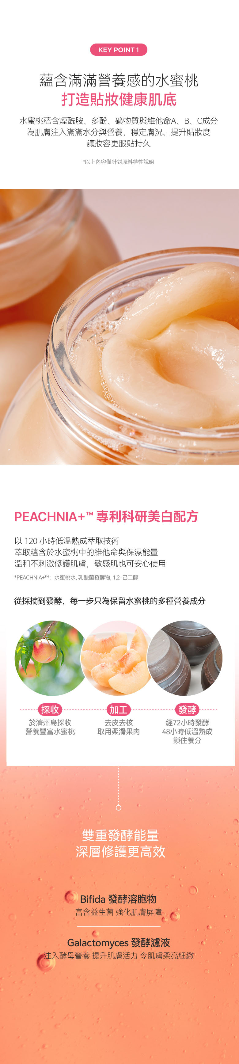 🍑 亮白光澤度提升72%,展現透亮水潤肌底