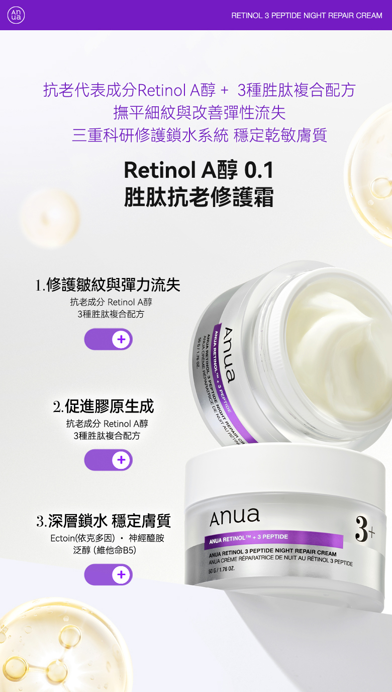 🔮 Retinol A醇 x 3種胜肽複合配方 x Ectoin