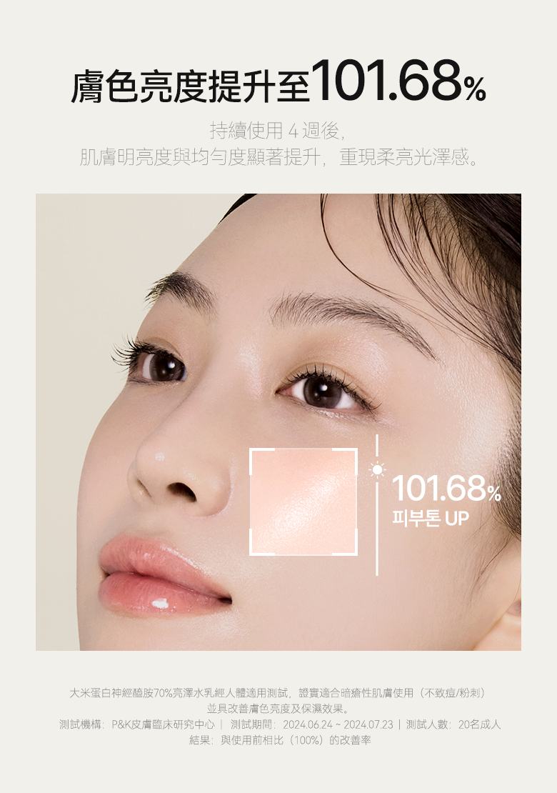 🌾 肌膚亮度提升101.7%,改善蠟黃、暗沉與肌疲倦感